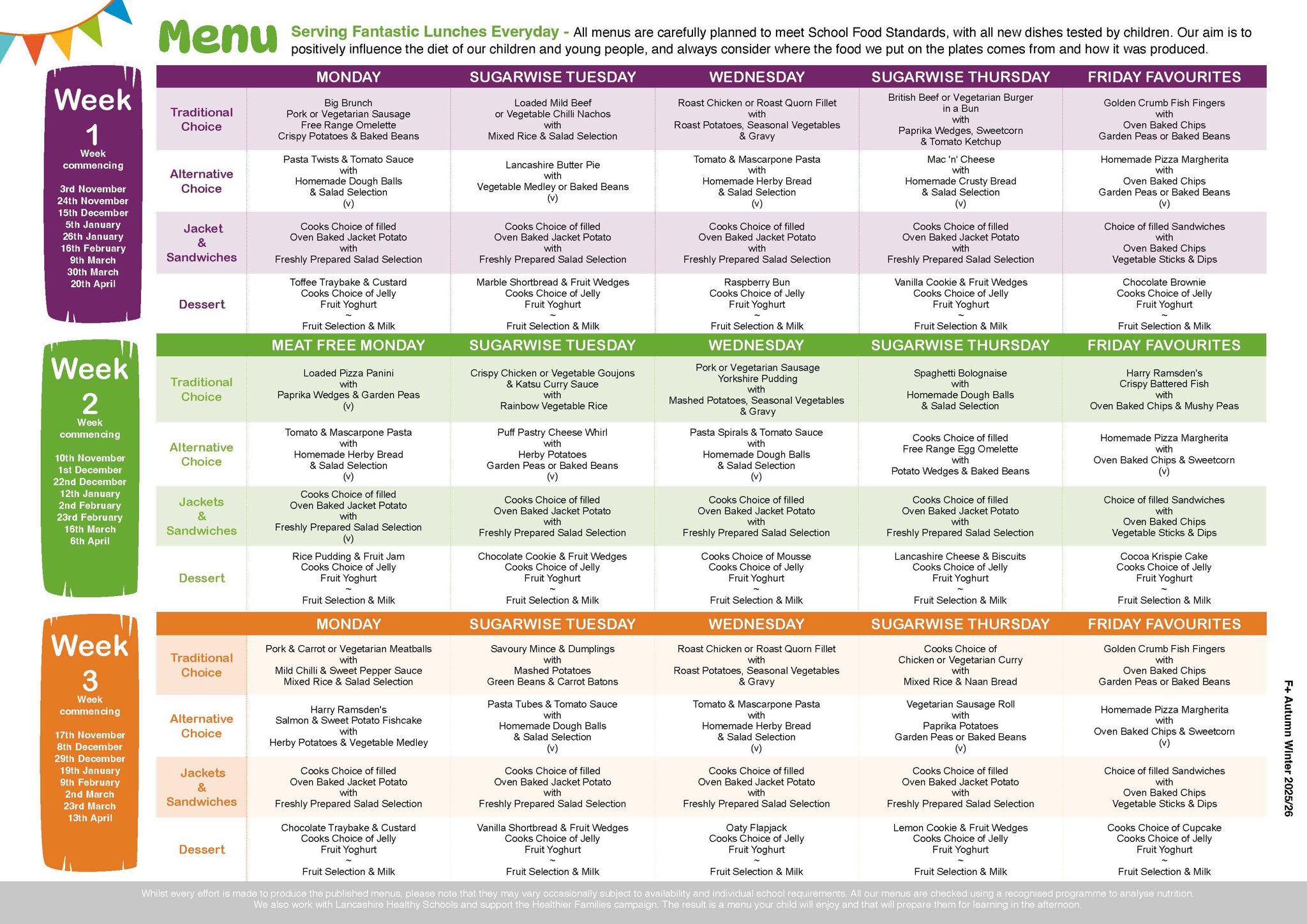 Lancashire County Council developed menus which meet the School Food Standards which were introduced in January 2015 as part of the School Food Plan.